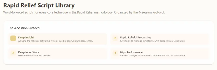🤖 BONUS #7: Script Builder: Plug in the client's issue and their words. Out comes a full session script. Not generic AI. Trained on Rapid Relief.